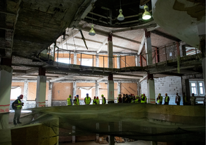 As part of a recent monitoring visit, representatives of the City inspected the site and assessed the contractor’s progress on repairing the interiors of the building – a legally protected heritage site. This is the last phase of the reconstruction during which the basic structural skeleton is still fully visible; this was a key reason why the contractor invited City representatives to visit the site at this stage. Representatives of the contractor and the architects responsible for the reconstruction project gave detailed information on the surface finishing work planned in the various parts of the complex, including what will be done with the most historically valuable elements of the building.