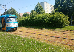 The tram line along Horní Street (between the municipal district office and the junction with Provaznická Street) is the latest line in Ostrava to be planted with stonecrops using a special planting grid system.