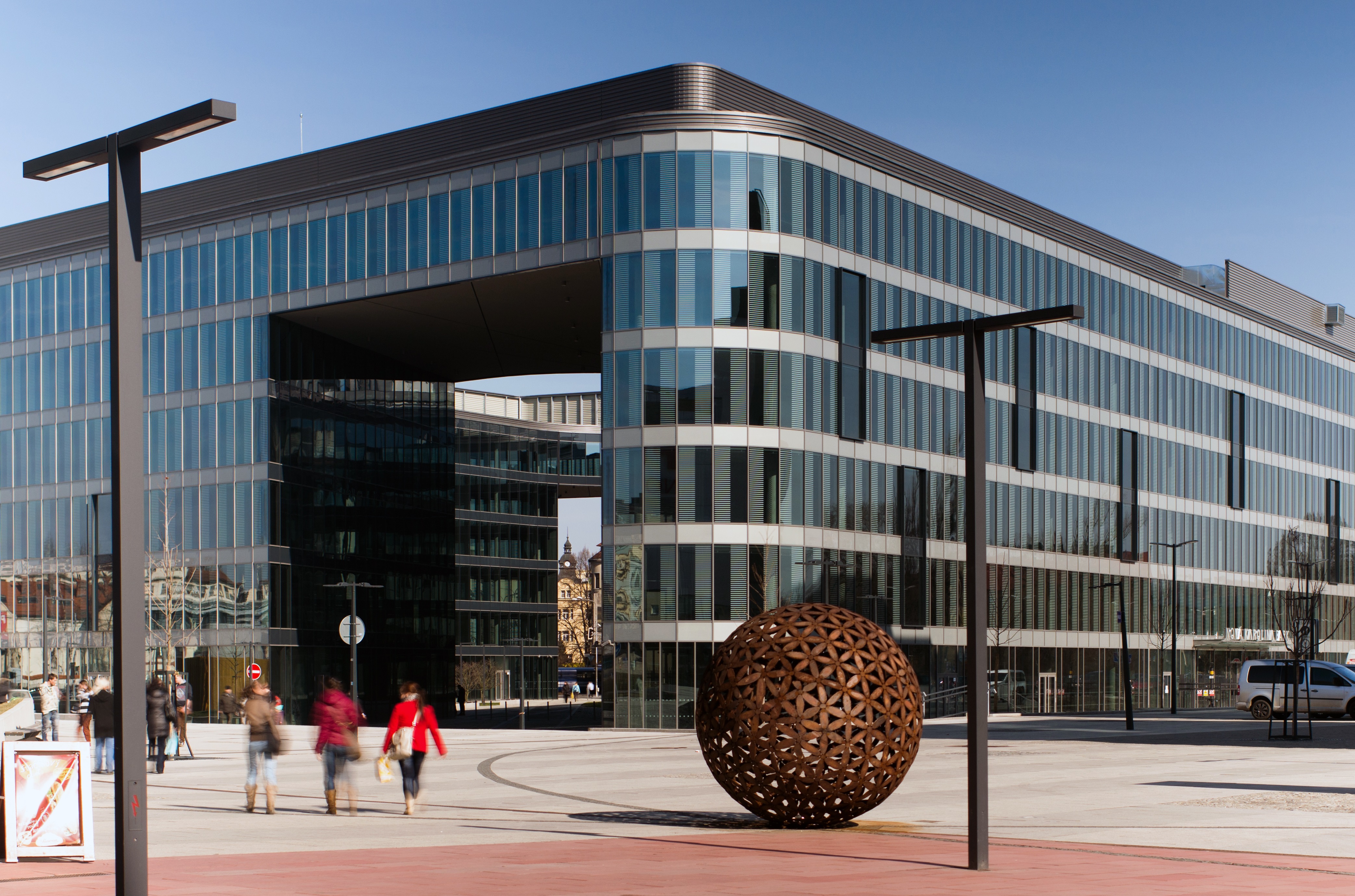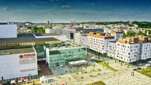 Part of the site was redeveloped into a brand-new city centre quarter known as Nová Karolina (“New Karolina”). This quarter includes the Forum Nová Karolina retail and entertainment mall (96 882 m2), residential developments (around 1 200 apartments), the Nová Karolina Park office complex (67 720 m2), leisure/entertainment/sports facilities (8 220 m2), extensive underground car parking, green areas and other public open-air spaces – as well as full transport infrastructure.