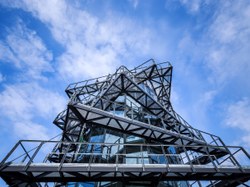 The ‘Bolt Tower’ is a unique structure added to the top of the historic blast furnace – so called because its spiral form resembles the screw-thread of a bolt. The tower forms part of the blast furnace tour route, and reaches a height of 80 metres above ground level. As well as offering breathtaking panoramic views (including the whole of Ostrava and the Beskydy Mountains to the south), the tower also has a sky café and a clubroom used for technology-related teaching. The tour route takes visitors through the heart of the blast furnace, showing how raw materials were transformed into molten iron. The tower (and the beginning of the tour route) is accessed by an elevator.